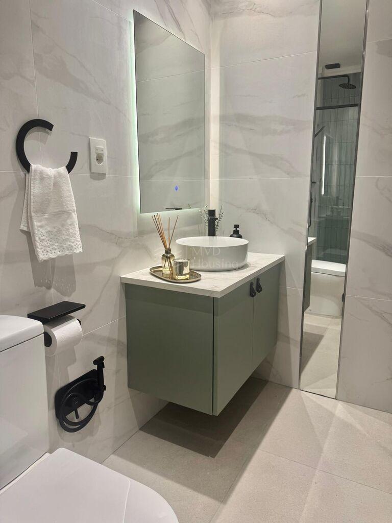 Revestimiento, tanto pisos como paredes de porcelanato, baños y cocina con muebles y artefactos premium tope de gama.
